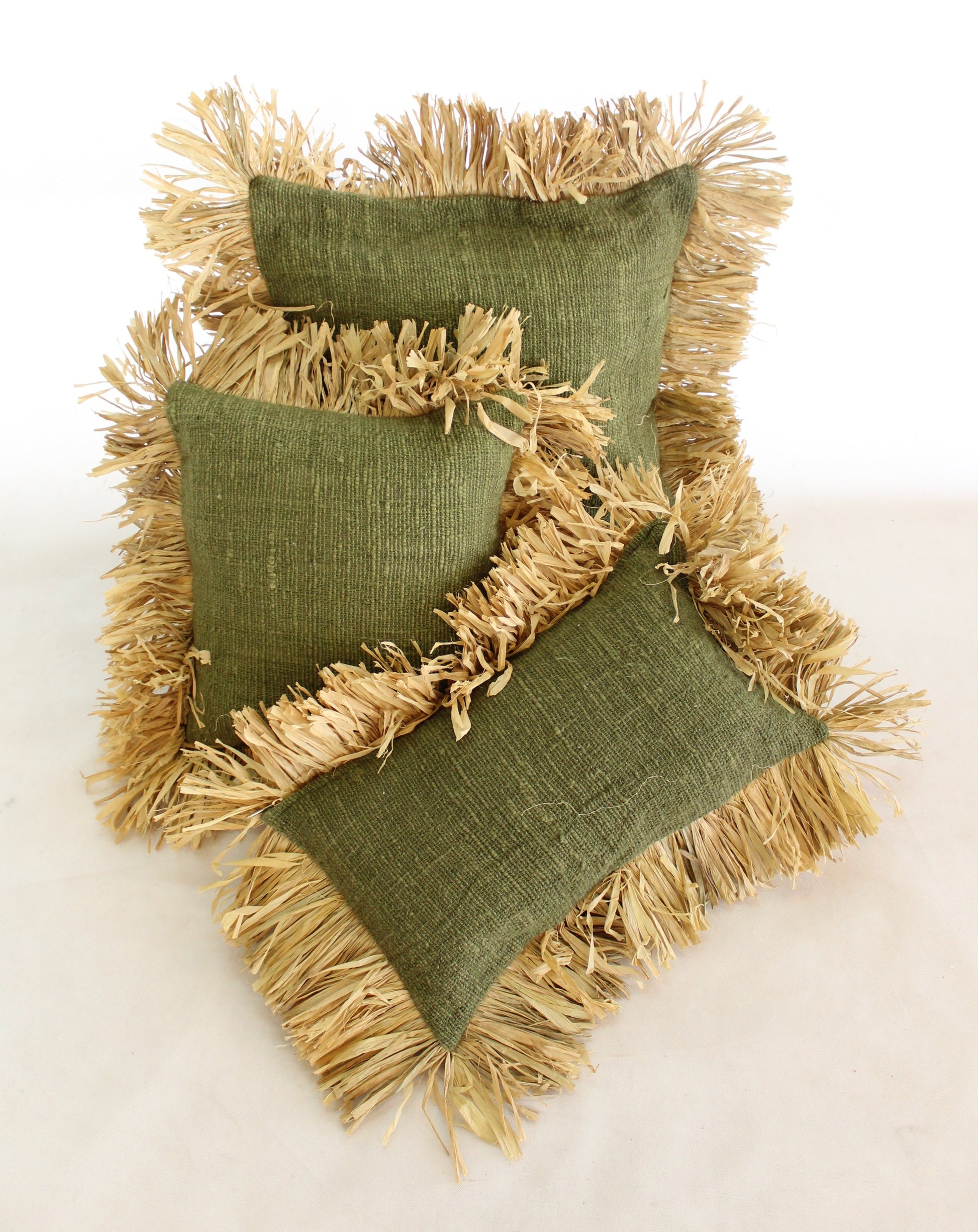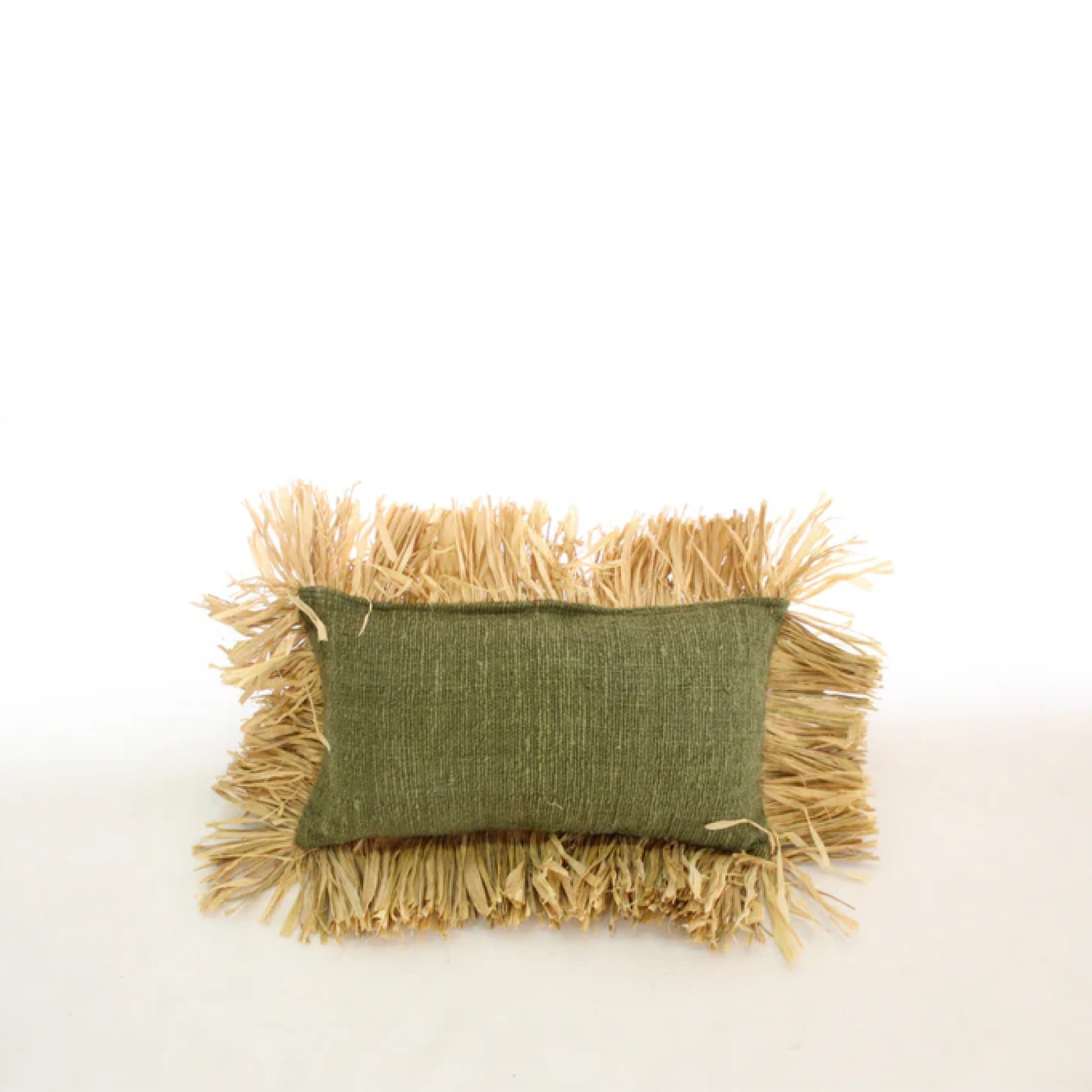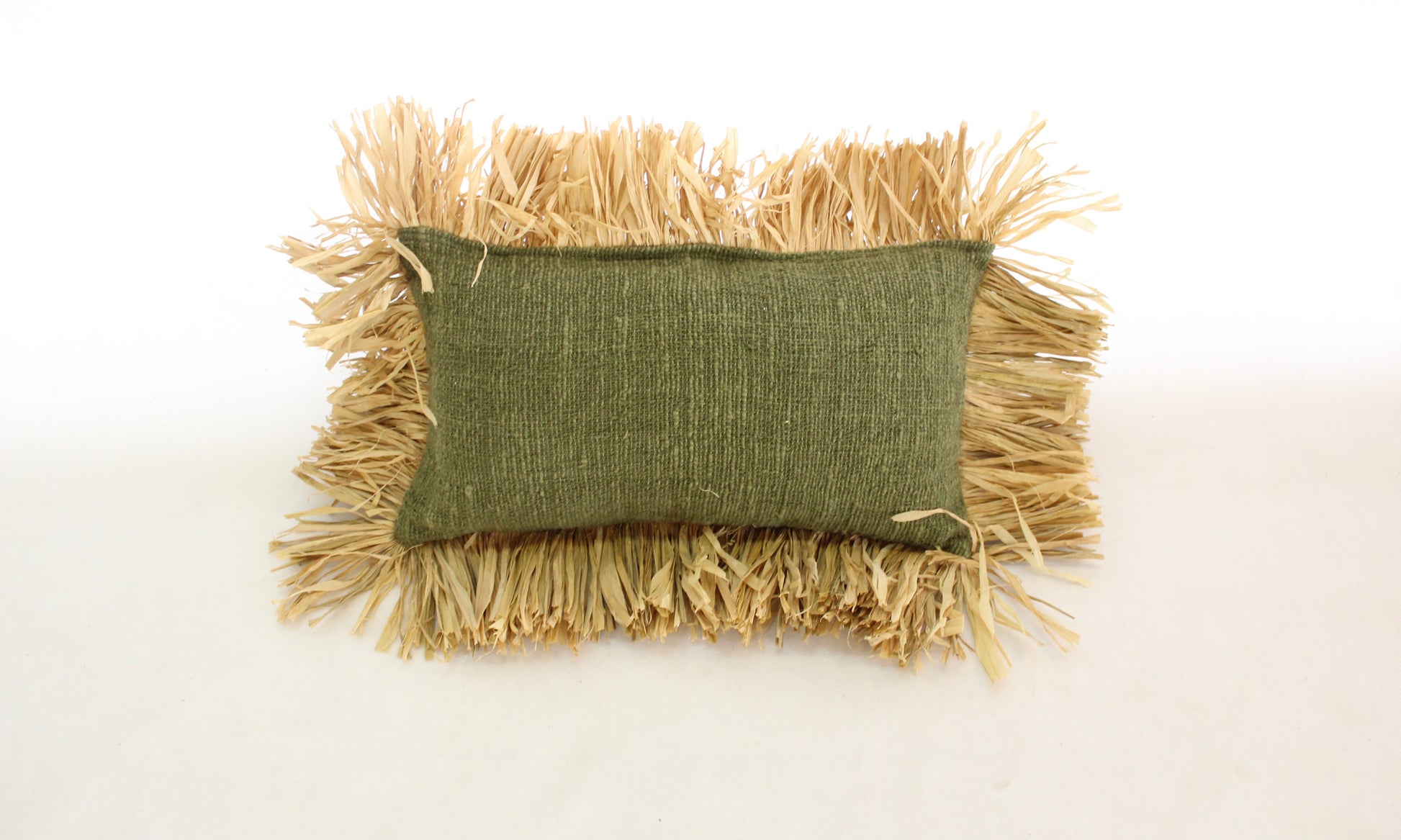 Agrega frescura y sofisticación a tu decoración con el Cojín Canggu Green, confeccionado en tela ikat de tono verde profundo y ribeteado con flecos de rafia natural. Esta pieza combina autenticidad textil y diseño orgánico para enriquecer cualquier ambiente con un aire tropical y bohemio. Ideal para renovar rincones como sofás, camas o áreas lounge al aire libre.