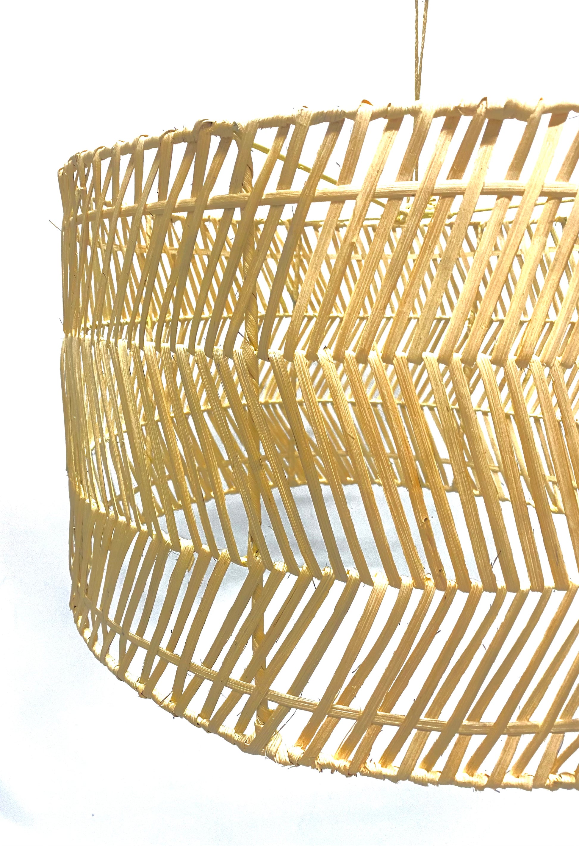 Ilumina tus espacios con autenticidad y estilo gracias a la Pantalla Bisa. Confeccionada artesanalmente por manos expertas en ratán, su tejido geométrico proyecta una luz acogedora y elegante. Perfecta para interiores o exteriores techados, crea una atmósfera cálida, moderna y versátil 🌿✨