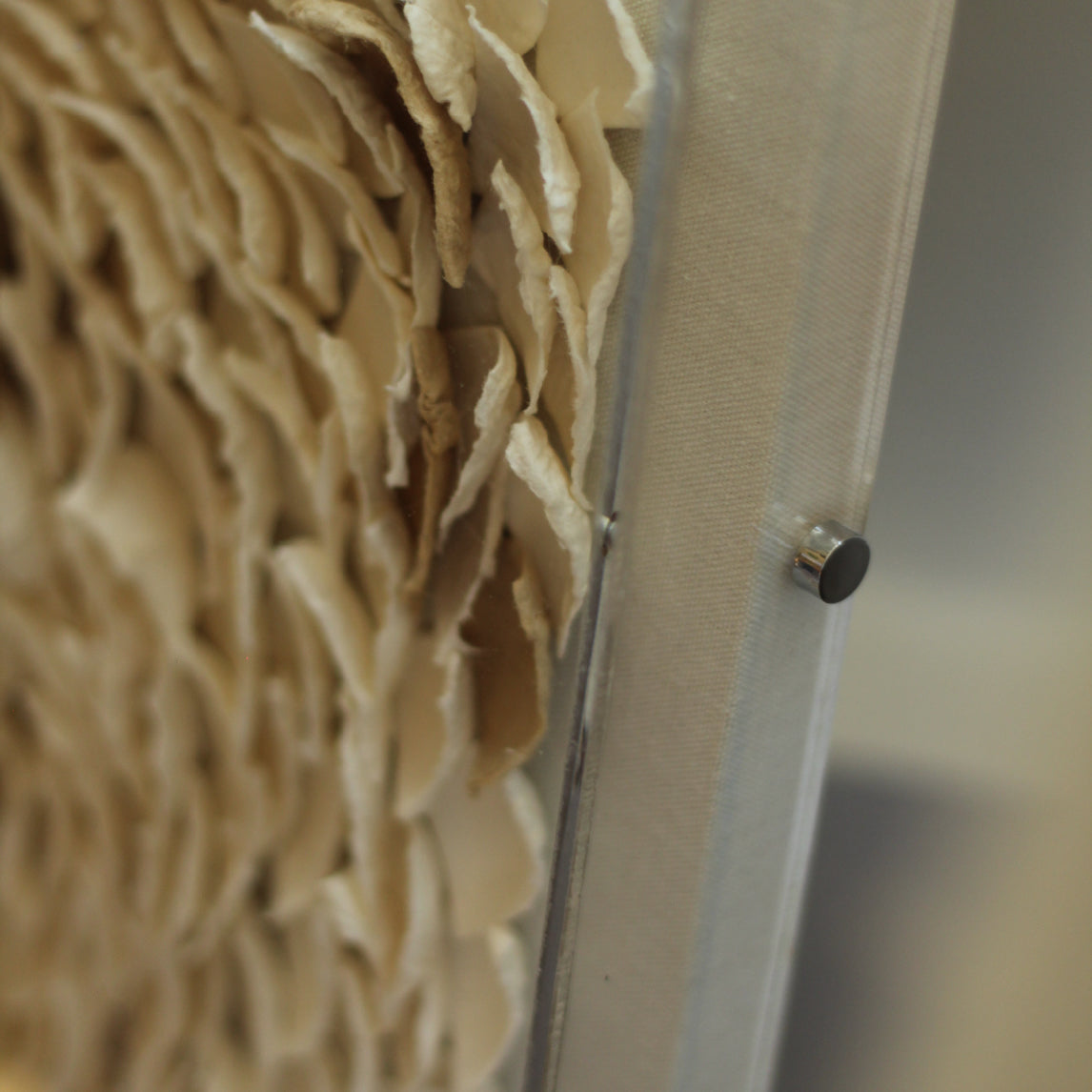 El Cuadro “Capas en Escamas” es una exquisita pieza de 60×60 cm, elaborada artesanalmente con una ancestral técnica a partir de papel hecho a mano con corteza de árbol 100 % natural. Su composición evoca la forma de escamas suaves y orgánicas que, dispuestas en capas ascendentes, crean un efecto visual y táctil cautivador ✨.