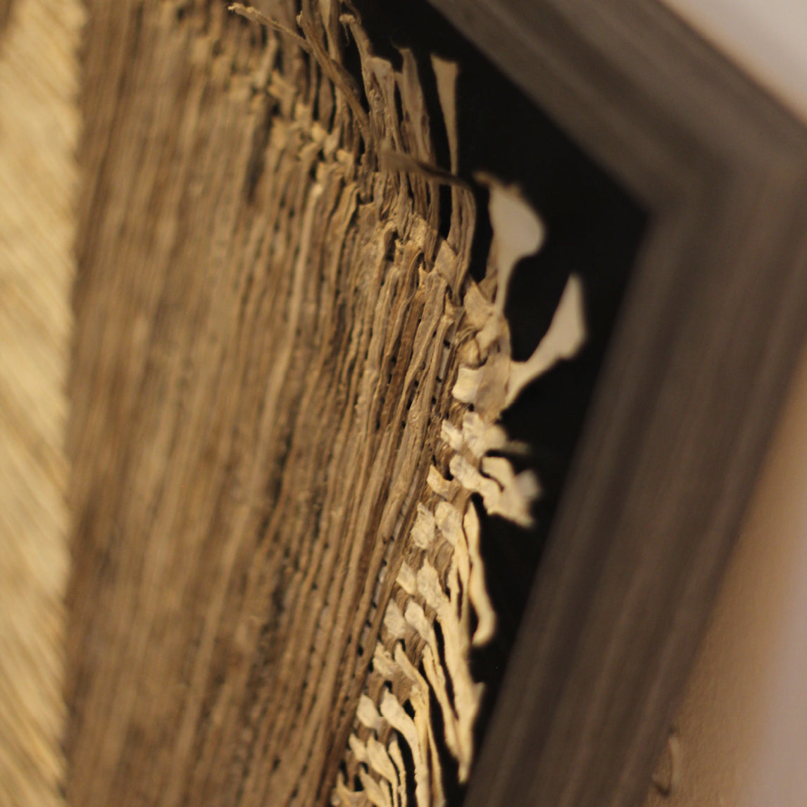 El Cuadro Trama Piramidal (70 x 70 cm) es una pieza que fusiona la precisión geométrica con la riqueza artesanal del papel hecho a mano. Tejido con fibras naturales utilizando una ancestral técnica , su diseño en forma de pirámide evoca estabilidad, fuerza y conexión con la tierra. La textura tejida a mano y los bordes deshilachados le otorgan una estética rústica y contemporánea, perfecta para ambientes que buscan calidez y carácter. Su enmarcado en madera oscura aporta contraste y realza la delicadeza del entramado. 🌾🖤