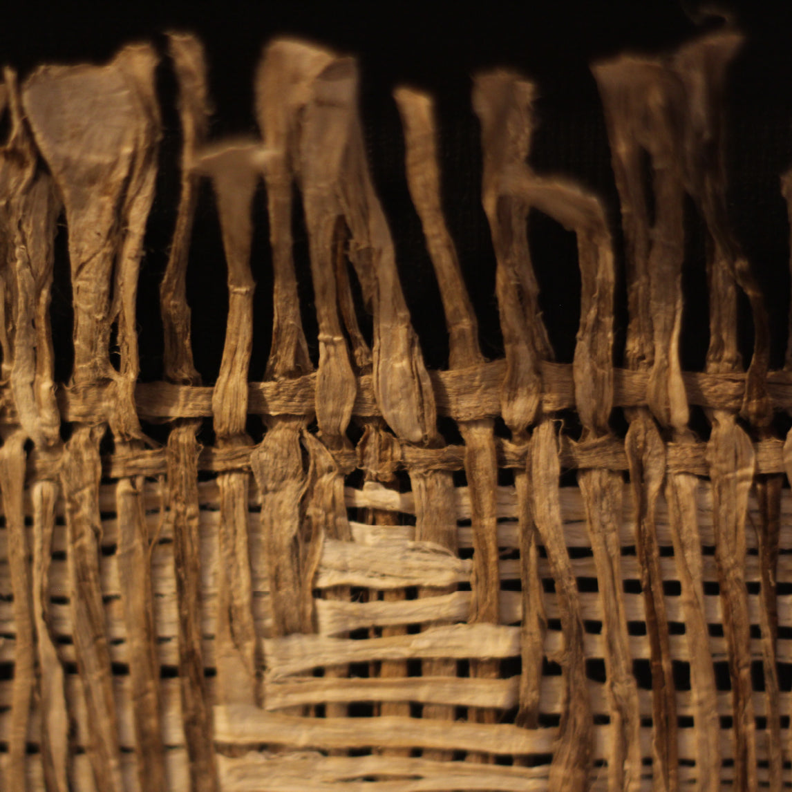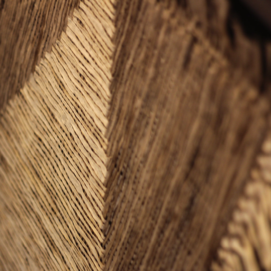 • Bordes con flecos orgánicos que resaltan la autenticidad de la pieza