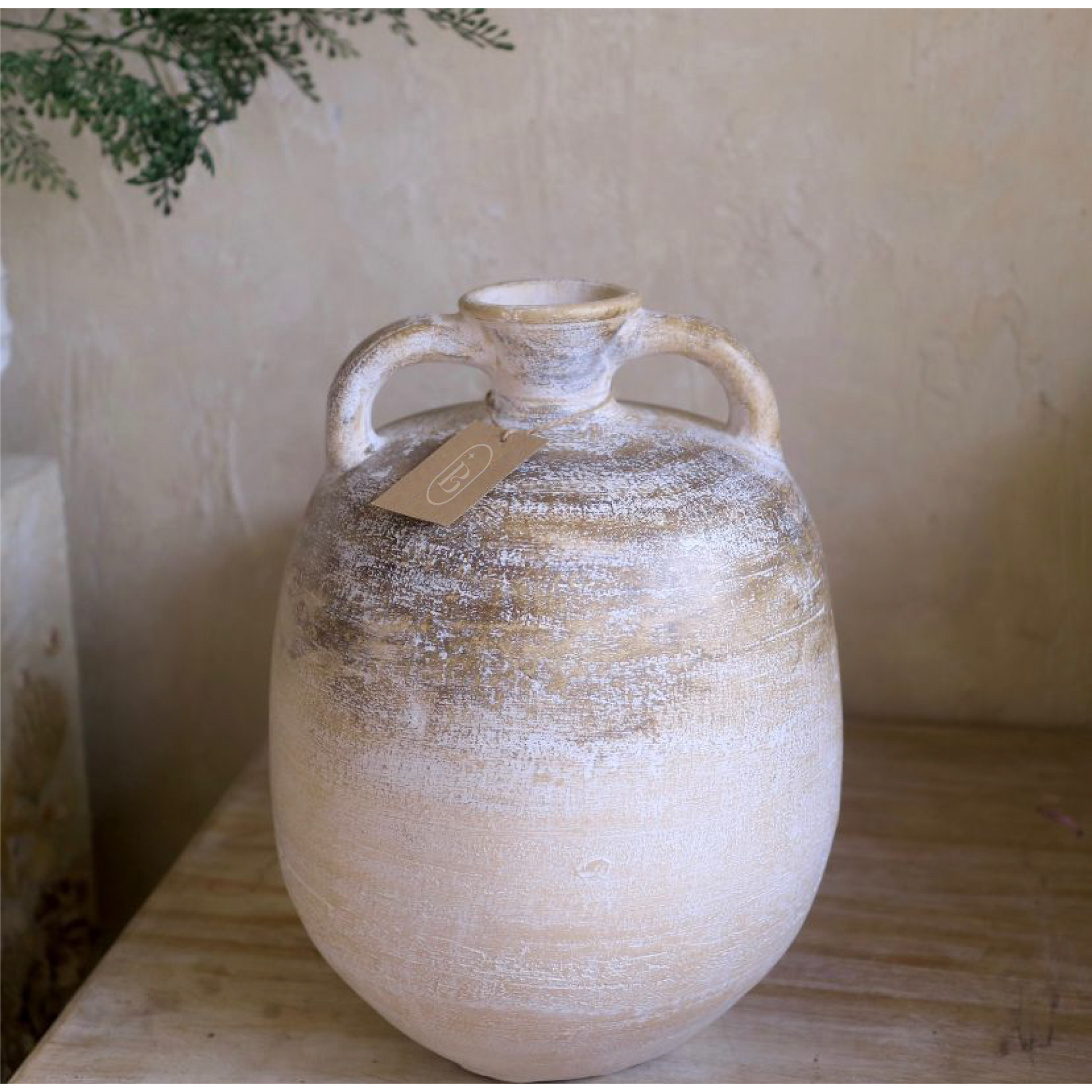 El Jarrón Abu Round es una pieza artesanal única, elaborada 100% a mano en Bali con terracota y acabado en pátina aguada que le otorga un aspecto auténtico y envejecido. Su forma redondeada y asas dobles evocan la tradición alfarera mediterránea, convirtiéndolo en un elemento decorativo ideal para aportar calidez y carácter a cualquier espacio. Perfecto para quienes valoran la artesanía y el encanto atemporal.