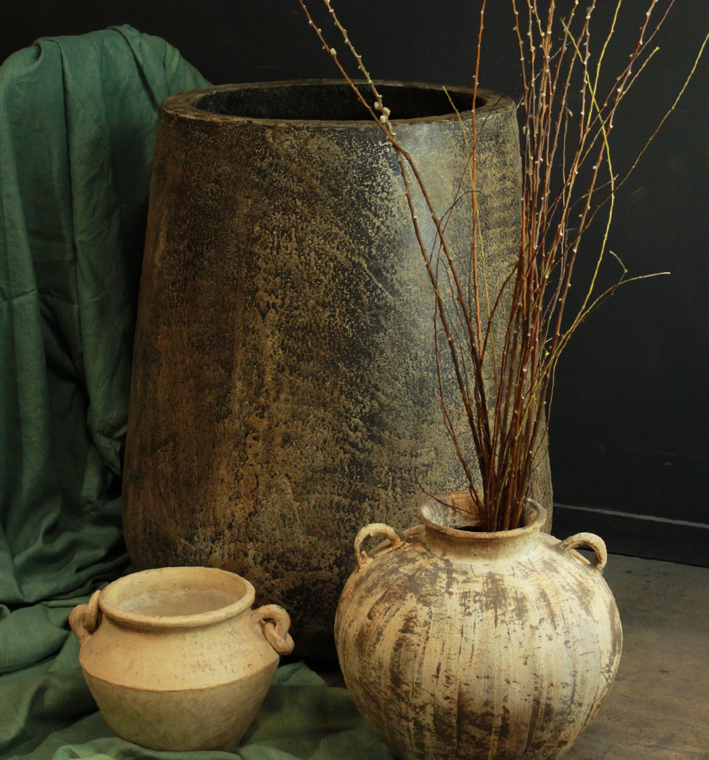 El Jarrón Batu es una pieza artesanal exclusiva, elaborada completamente a mano en terracota por talentosos artesanos. Su acabado rústico y diseño auténtico lo convierten en un elemento decorativo lleno de personalidad, perfecto para quienes buscan aportar elegancia, tradición y calidez a su hogar. Ideal para exhibir arreglos florales secos o como pieza decorativa independiente.