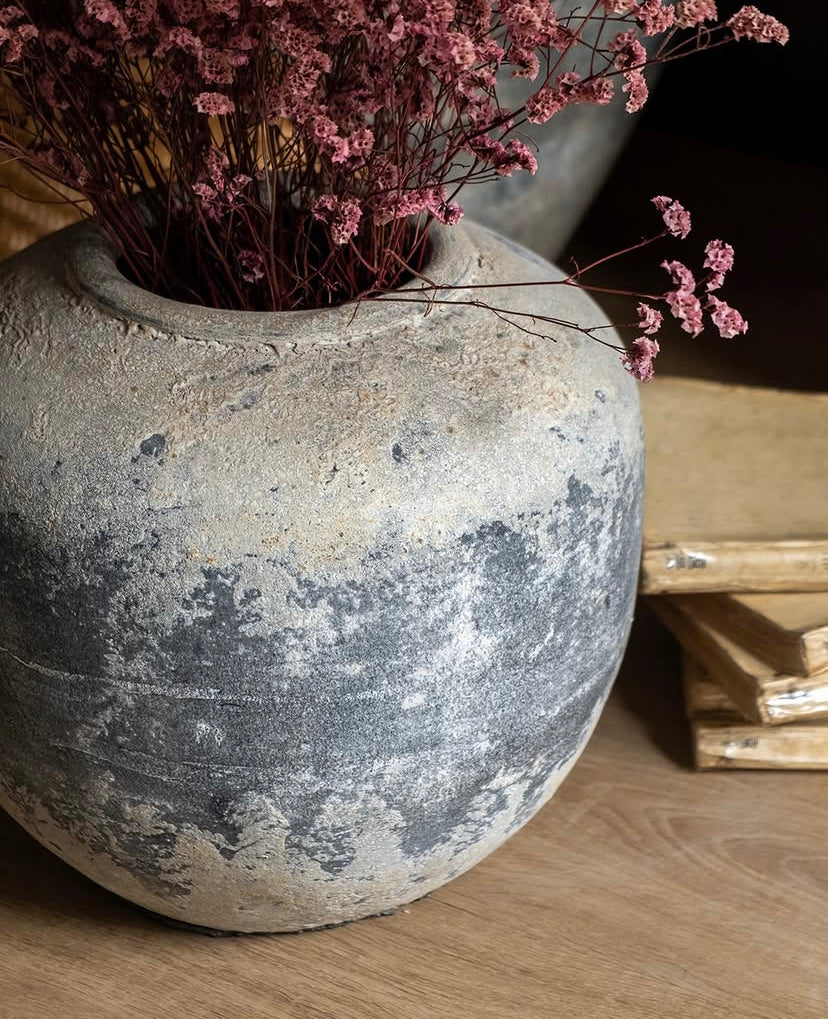 El Jarrón Dark Round es una pieza artesanal 100% hecha a mano en terracota, con un acabado envejecido en tonos oscuros y claros que resaltan su belleza rústica. Su forma redondeada y compacta lo convierte en un elemento decorativo versátil, ideal para dar un toque de autenticidad y calidez a cualquier espacio.