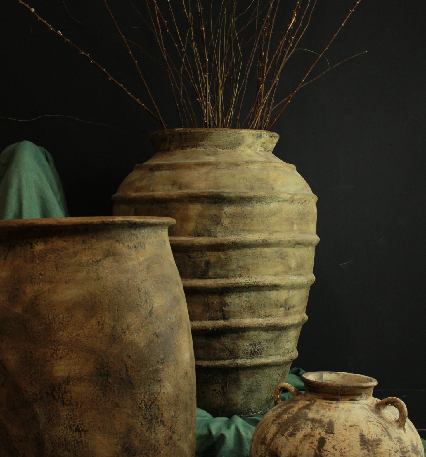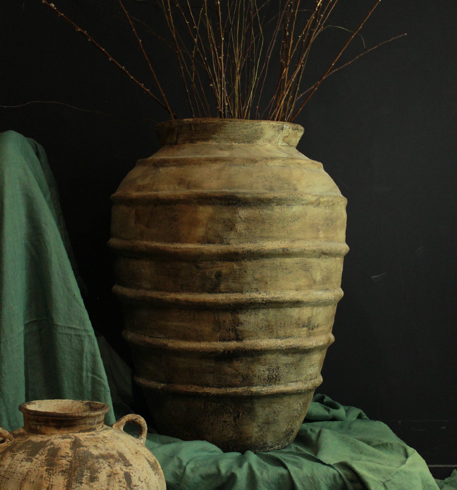 🏺 JARRÓN GREY GREEN – Encanto Rústico en Terracota Hecha a Mano