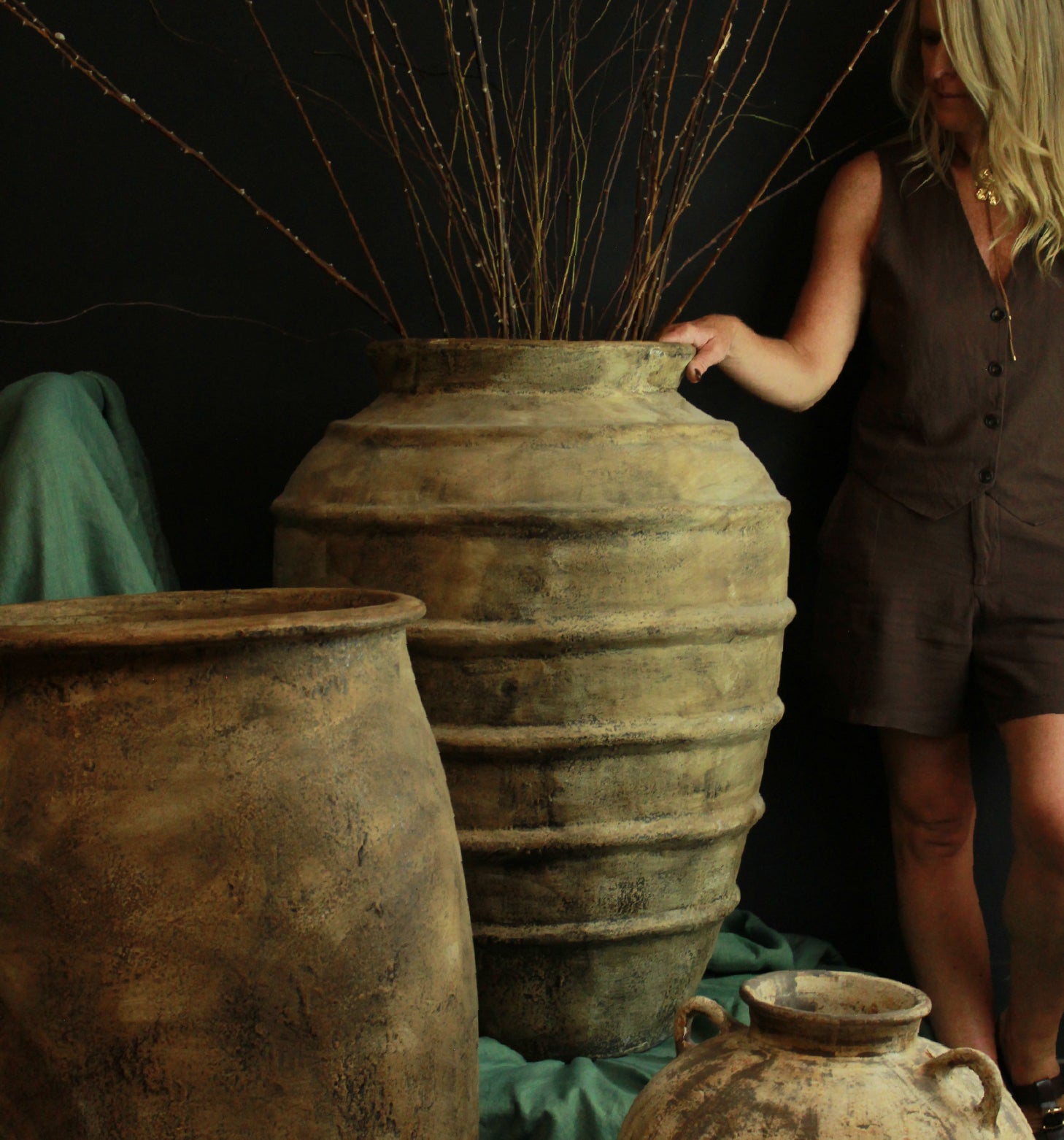 El Jarrón Grey Green es una pieza artesanal exclusiva, elaborada completamente a mano en terracota por talentosos artesanos. Su acabado rústico y diseño auténtico lo convierten en un elemento decorativo lleno de personalidad, perfecto para quienes buscan aportar elegancia, tradición y calidez a su hogar. Ideal para exhibir arreglos florales secos o como pieza decorativa independiente.