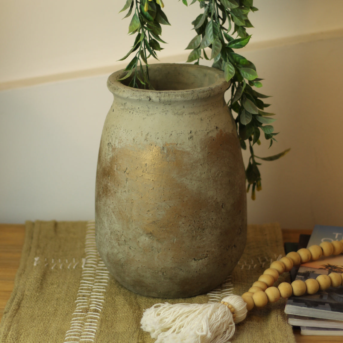 El Jarrón Green es una pieza artesanal única, fabricada 100% a mano en terracota, con un acabado en pátina color olivo que aporta un aire cálido y sofisticado a cualquier ambiente. Su diseño de líneas suaves y textura rústica lo convierte en un elemento decorativo versátil, perfecto para realzar la belleza de tu hogar.