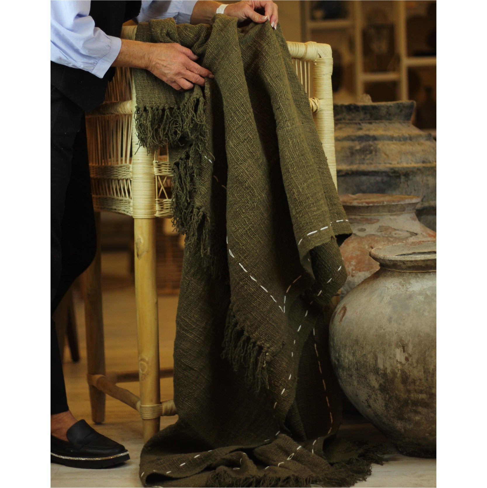 MANTA GEWEKA OLIVE – Calidez rústica con estilo artesanal en verde oliva