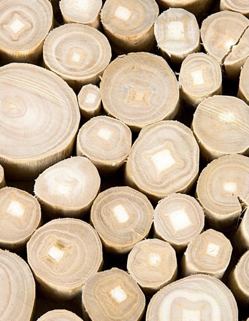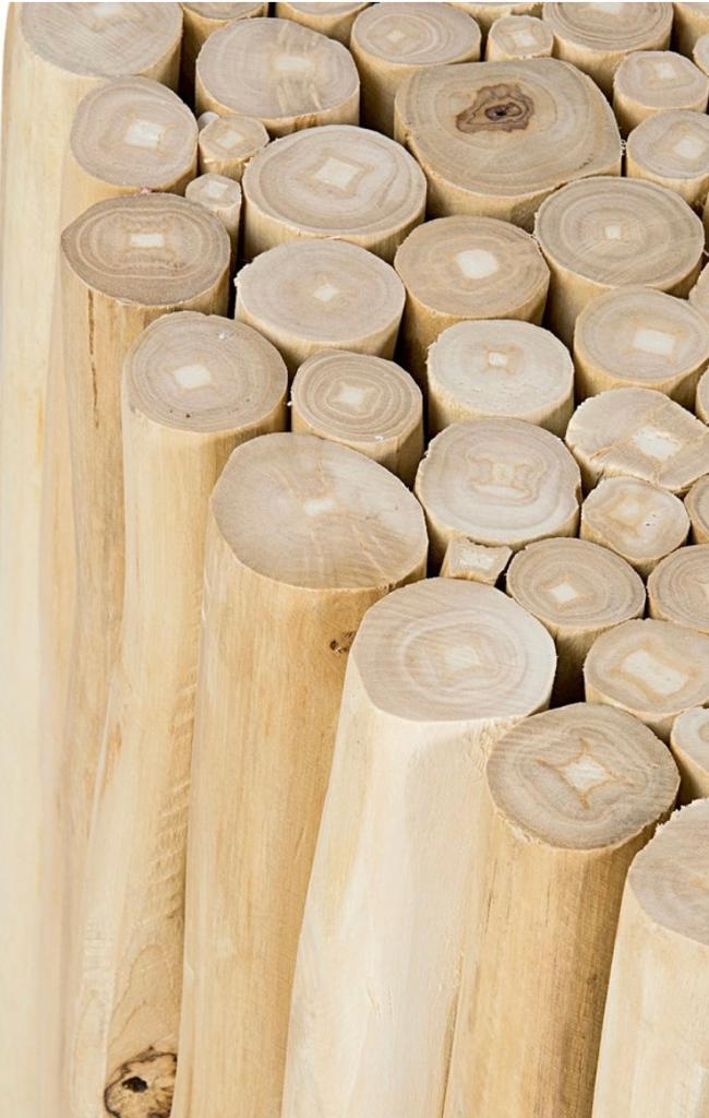 • Troncos de madera de teka reciclada y seleccionada
