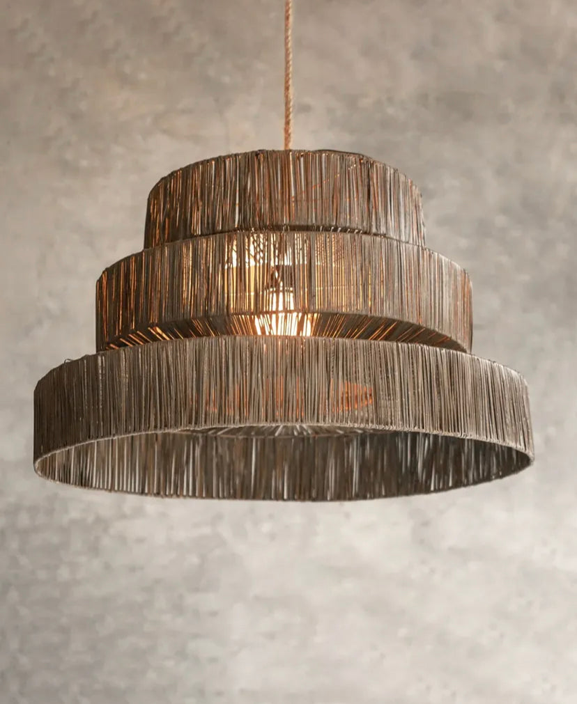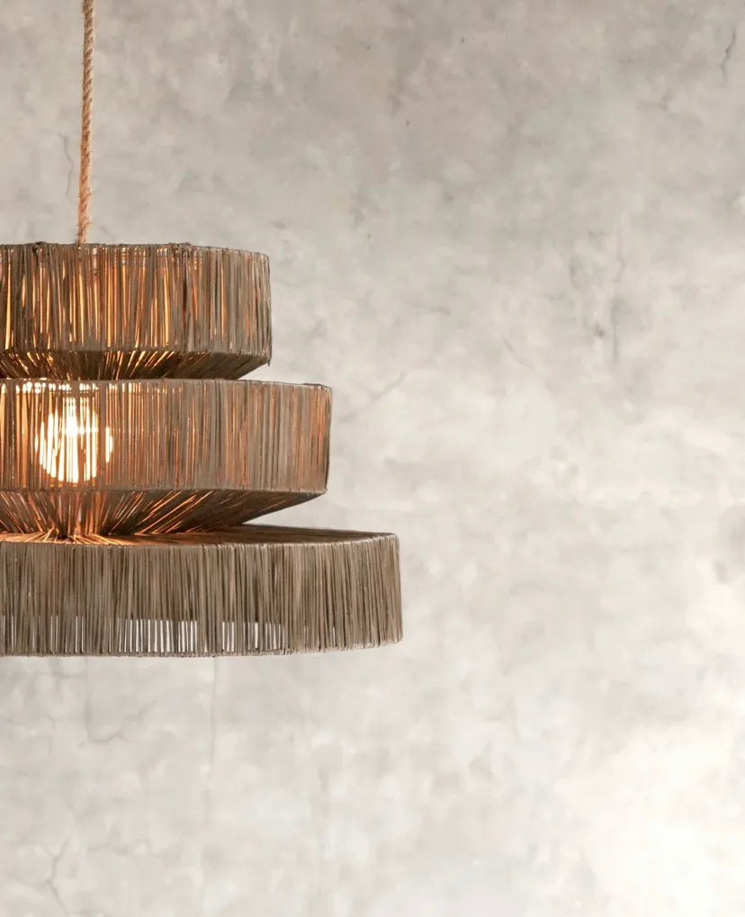 Haz de tu hogar un espacio lleno de arte y calidez con la Pantalla Gong Natural. Tejida cuidadosamente a mano por artesanos en Indonesia, esta lámpara colgante destaca por su diseño dinámico y su tejido ligero en ratán natural. Su forma ovalada, proyectando una luz cálida y suave que transforma cualquier ambiente en un refugio lleno de estilo 🌾✨