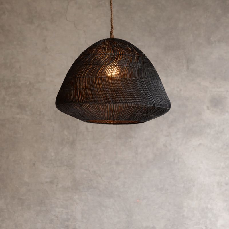 Haz de tu hogar un espacio lleno de arte y calidez con la Pantalla Gong BLACK. Tejida cuidadosamente a mano por artesanos en Indonesia, esta lámpara colgante destaca por su diseño dinámico y su tejido ligero en ratán natural. Su forma ovalada, proyectando una luz cálida y suave que transforma cualquier ambiente en un refugio lleno de estilo 🌾✨