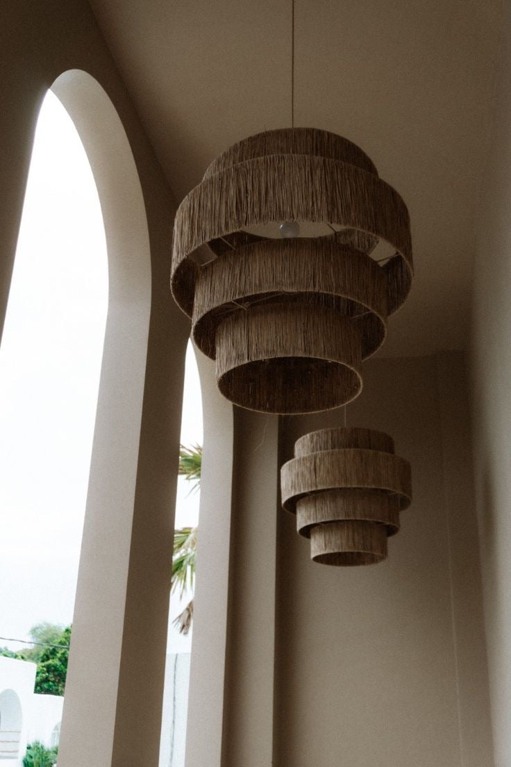 Haz de tu hogar un espacio lleno de arte y calidez con la Pantalla TERJUM Tejida cuidadosamente a mano por artesanos en Indonesia, esta lámpara colgante destaca por su diseño dinámico y su tejido ligero en ratán natural. Su forma ovalada, proyectando una luz cálida y suave que transforma cualquier ambiente en un refugio lleno de estilo 🌾✨