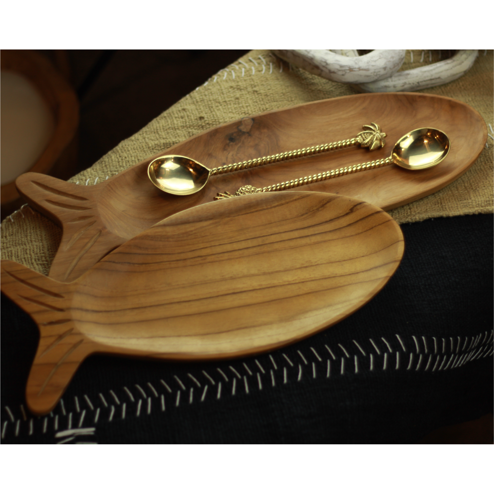 Añade un toque único a tu cocina con nuestra tabla de madera teKa tallada en forma de pez, disponible en dos tamaños. Perfecta para servir un rico cocktail o como decoración, cada pieza resalta la belleza natural de la madera. Ideal para los amantes del estilo náutico o para quienes buscan un detalle especial en su mesa. ¡Haz de cada comida una experiencia memorable!